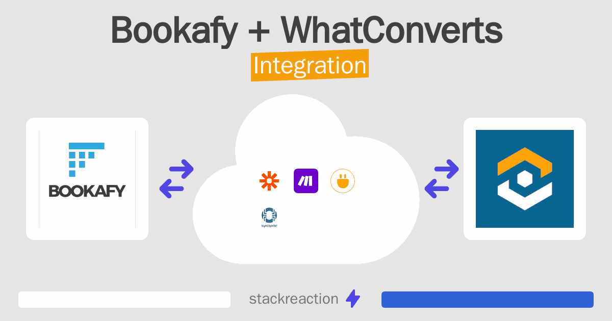- You can connect Bookafy and WhatConverts automatically using no-code Workflow Automation Tool. Use Make.com, Zapier, SyncSpider, Pabbly Connect or Integrately to link Bookafy and WhatConverts.