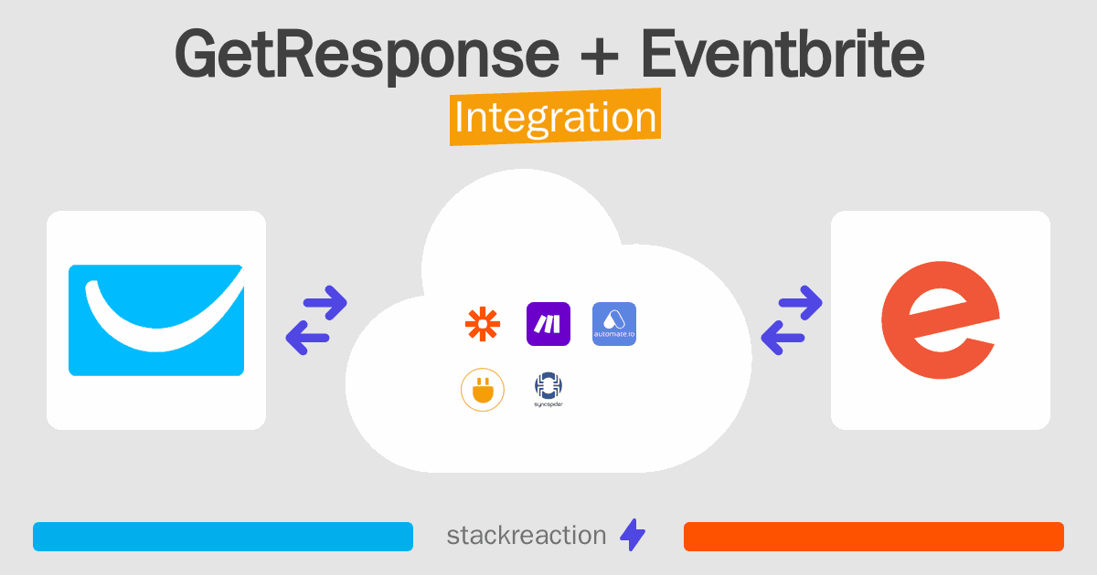- You can connect GetResponse and Eventbrite automatically using no-code Workflow Automation Tool. Use Make.com, Zapier, SyncSpider, Pabbly Connect, IFTTT, Integrately, Albato or Pipedream to link GetResponse and Eventbrite.