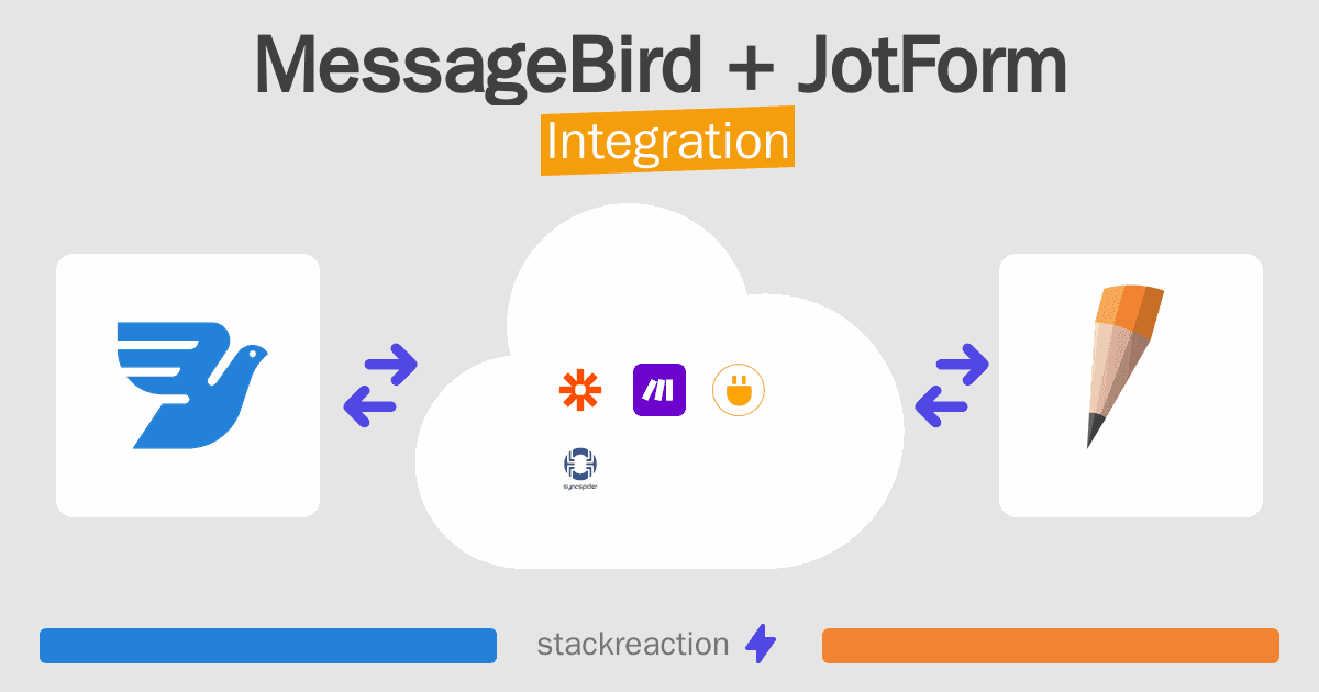 - You can connect MessageBird and JotForm automatically using no-code Workflow Automation Tool. Use Make.com, Zapier, SyncSpider, Pabbly Connect, Integrately, Albato or Pipedream to link MessageBird and JotForm.