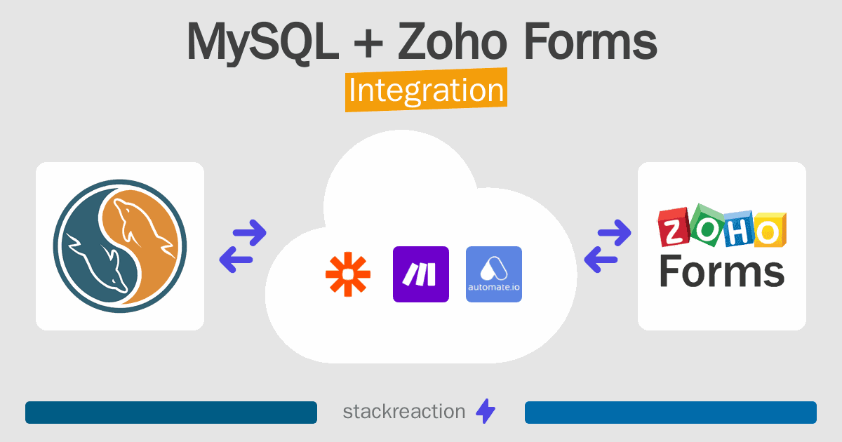 - You can connect MySQL and Zoho Forms automatically using no-code Workflow Automation Tool. Use Make.com, Zapier, Pabbly Connect, Integrately or Pipedream to link MySQL and Zoho Forms.