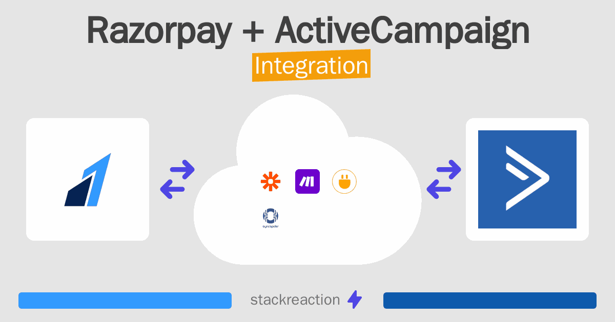 - You can connect Razorpay and ActiveCampaign automatically using no-code Workflow Automation Tool. Use Make.com, Zapier, SyncSpider, Pabbly Connect, Integrately, Albato or Pipedream to link Razorpay and ActiveCampaign.