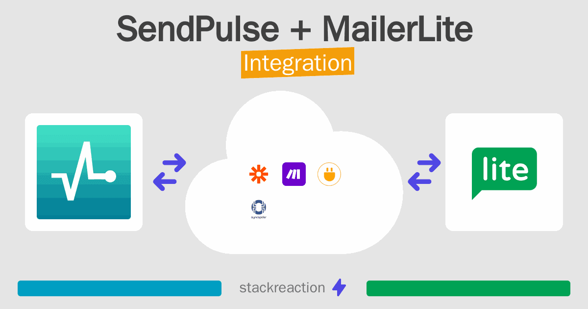- You can connect SendPulse and MailerLite automatically using no-code Workflow Automation Tool. Use Make.com, Zapier, SyncSpider, Pabbly Connect, Integrately, Albato or Pipedream to link SendPulse and MailerLite.